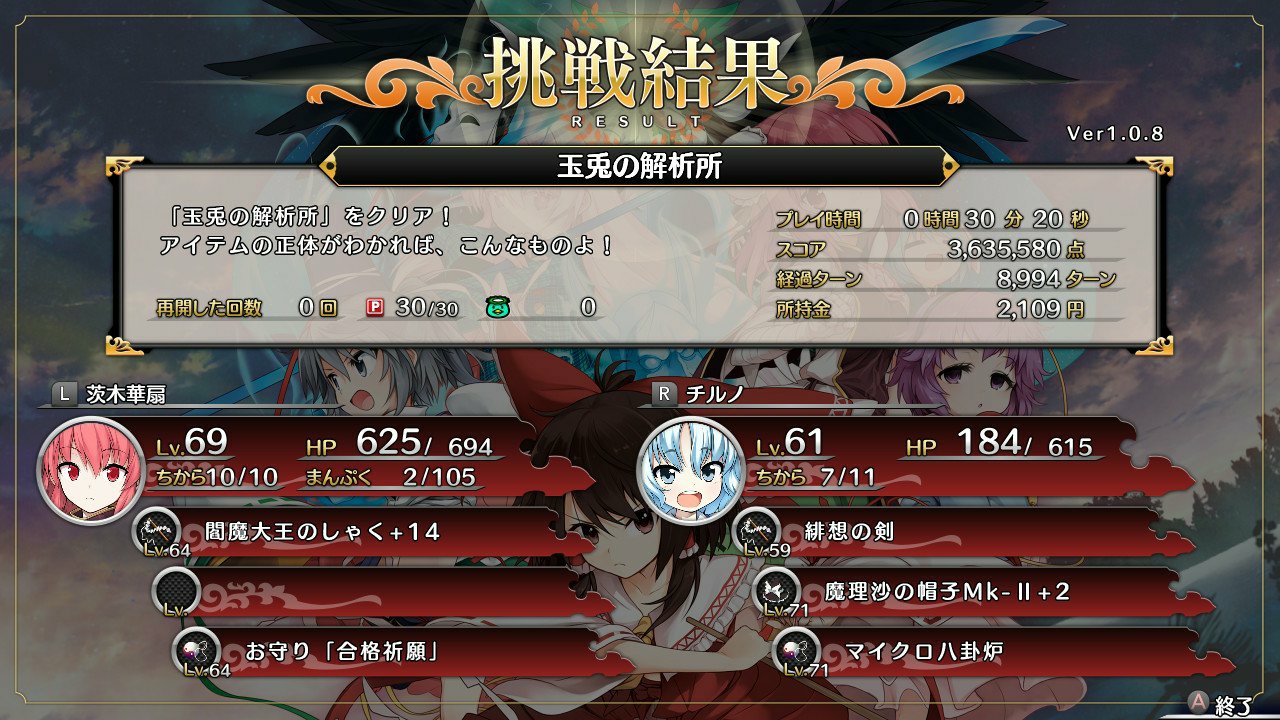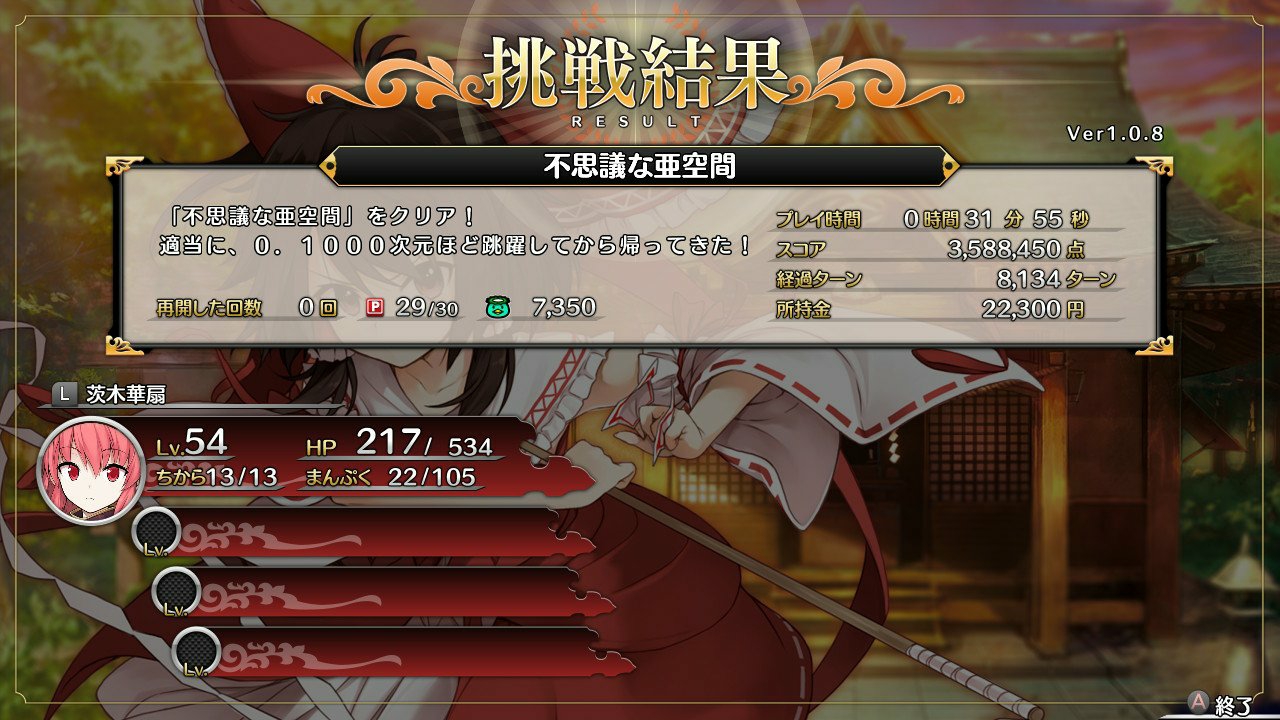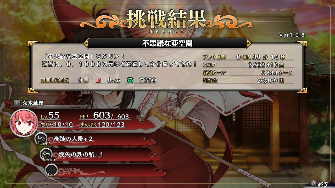 | 博麗の試練~月からの挑戦~ | 50F | やや難 | 短期 | ボス有り |